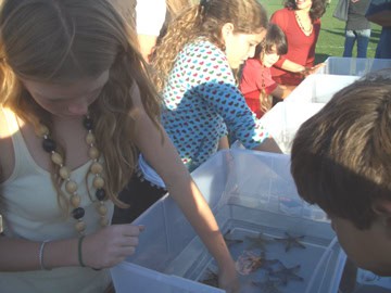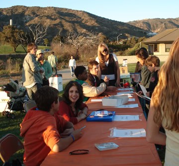 Santa Ana winds weren’t strong enough to keep people away from the Reef Check Ocean Festival and “Surf’s Up” screening held on October 6th at Malibu Bluffs Park. The event hosted a variety of activities for children and adults alike, from a touch tank with sharks and starfish and other cool things at the Reef Check tent to booths hosted by the Junior Lifeguards, Cabrillo Marine Museum and Star Ecostation, which included various exotic animals from talking parrots to a komodo dragon. Volunteers were also on site, encouraging everyone in attendance to sign the International Declaration of Reef Rights.