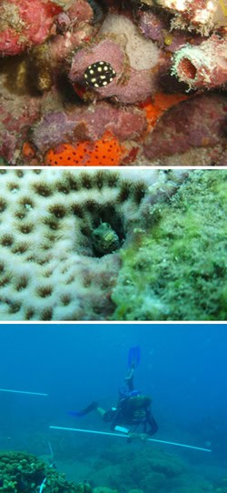On the 21st of October 2008, park rangers and staff from the Soufriere Marine Management Area (SMMA) briefed us on the successes of the Marine Park and their work. Over the next two days, we surveyed three sites: Rachette Point, Superman’s Flight (at the base of the Petit Piton) and Grande Caille, all in the Soufriere area. Peter Butcher and the park rangers were extremely helpful, laying out the transect tapes prior to our dives and facilitating the dives with the use of their boat.
